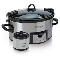 | The Crock-Pot® brandâ?TMs concept of slow cooking is so different â?" so improved over ordinary ways of preparing foods â?" that youâ?TMll be glad to learn about itâ?TMs advantages. In addition to enjoying better flavor, homemade meals, and saving money on meats and electricity, you will have more leisure time. Just add the ingredients, start the Crock-Pot® slow cooker and go off for the day! Youâ?TMll come home hours later to a warm and inviting home cooked meal. Prepare meals for 7-8 people with the touch a button! The 6 Qt Digital Cook & Carry makes meal planning easy with all the great features you expect from your Crock-Pot® slow cooker, plus 4 automatic time settings and automatic temperature settings for cooking soup to meat and all your other favorite slow cooker recipes. Dishwasher-safe removable oval stoneware makes easy work of clean up and doubles as a convenient serving dish complete with a dishwasher-safe glass lid. The bonus travel bag makes your slow cooker portable while keeping food warm. Also includes a 16 oz. Lil Dipper and 1-Year Limited Warranty. ...Read more |